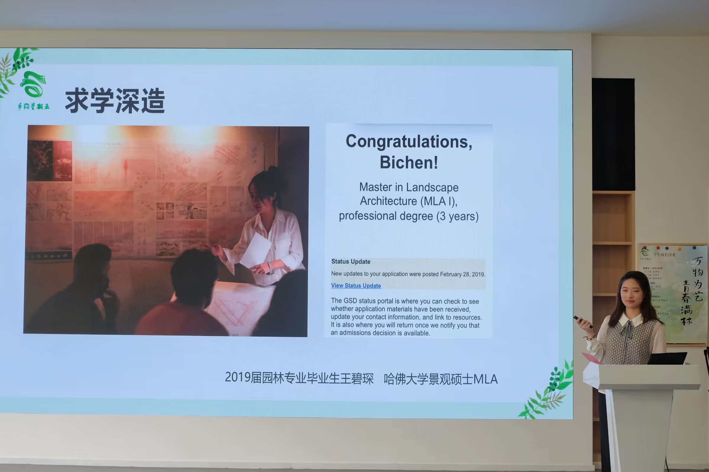 本科生2019级园艺专业赵赛澜同学立足园艺学科特色,分享了自己在大学里“培根”“定干”“成枝”“塑形”的成长过程,鼓励广大涉农学子要敢于试错、开拓创新、追寻梦想。本科生2019级风景园林专业石绍华同学讲述自己的专业学习实践经历,号召广大涉农学子将个人发展与祖国的前途命运紧密结合起来。本科生2020级园林专业李佳依菲带来古典园林设计的“微课堂”,分享如何以风景园林专业之“美”助力乡村振兴之“美”。她说,艺林学子要在东方美学与文化精髓的传承中,为乡村振兴添智,为美丽中国赋能。