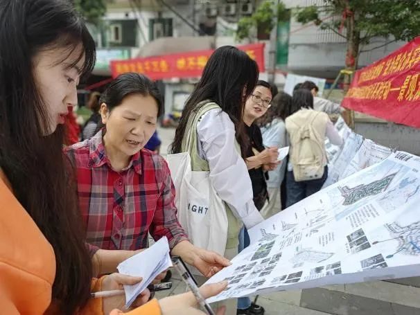 5月17日,社区规划师团队李圆圆、王波、蒋勇在北碚区奔月路开展“我为群众办实事”暨韩漫画