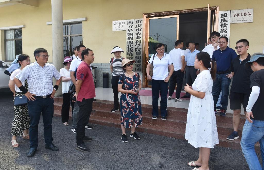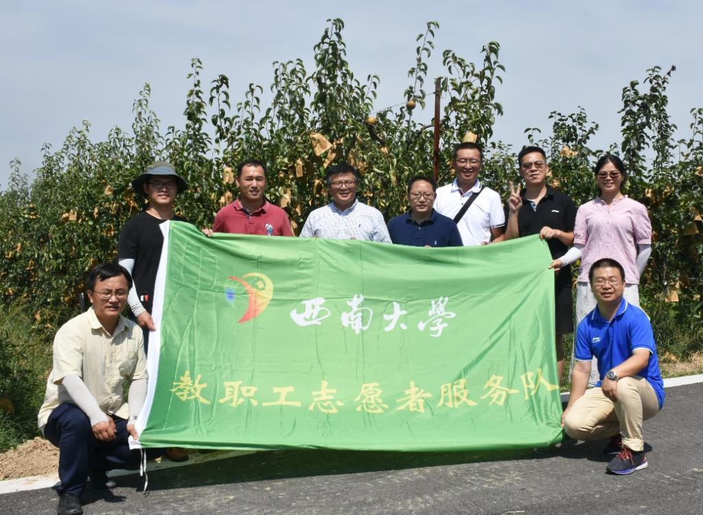 领导、园艺系教师、教工第二党支部全体党员和教职工“三下乡”志愿者服务队代表联合调研了有“中华梨村”之称的黄瓜山村,详细听取了黄瓜山村的建设思路,见证了一幅宜居宜业宜游的美丽乡村画卷。接着,大家参观了黄瓜山梨产业园区,详细了解了特色梨产业园建设和生产问题。教师代表针对生产过程中的施肥和出现的畸形果等问题,进行了详细的解答并给出了初步的解决方案。