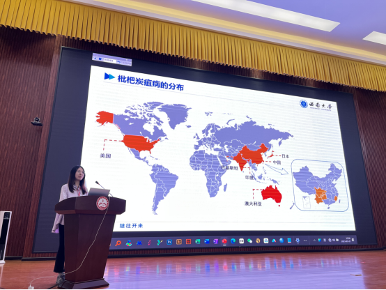 园艺系景丹龙副教授、党江波博士、博士生袁婷分别就野生枇杷基因组测序、枇杷非整倍体的分子核型鉴定、枇杷炭疽病的调控特性等内容做了大会报告。(供稿:景丹龙;审核:郭启高;复核发布:金云鹤)