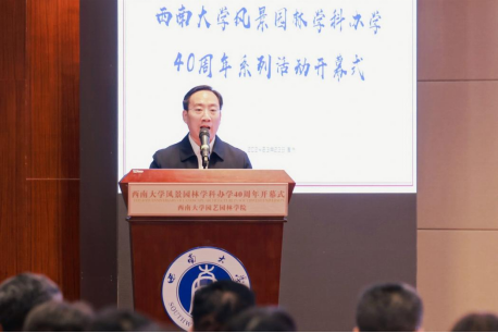 石继渝作为校友代表,在致辞中表示,40年前母校开启园林绿化专业之路,为西南大地风景园林事业播下了种子。母校浓厚的育人环境培养了学子坚韧不拔的品质和创新精神。40年的风雨历程,学校培养了一批又一批风景园林行业的栋梁之才,为山清水秀美丽之地的建设提供了坚实的力量。
