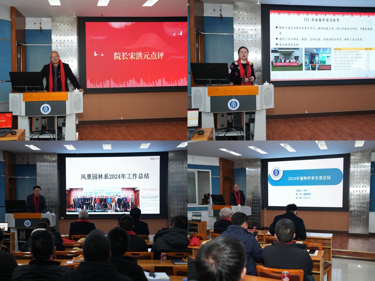 领导班子和班子成员分别做述职述廉报告,并进行了领导班子和班子成员民主测评。随后,园艺系、风景园林系、植物系以及工会、教代会依次汇报2024年工作开展情况。园艺系从亮点工作、专业建设、平台建设、学术交流、取得成绩、科普方面、2025年工作计划等方面进行了汇报;风景园林系从学科与专业建设、本科教学、研究生教育与平台建设、科研成果、学术报告、对外交流、人才队伍建设、社会服务、来年展望等方面进行了汇报;植物系从教学工作、科学研究、育人工作、社会服务、未来规划等方面进行了汇报;工会和教代会也分别汇报了他们在落实学校工作要求、组织开展工会活动、维护教职工权益、促进韩漫画