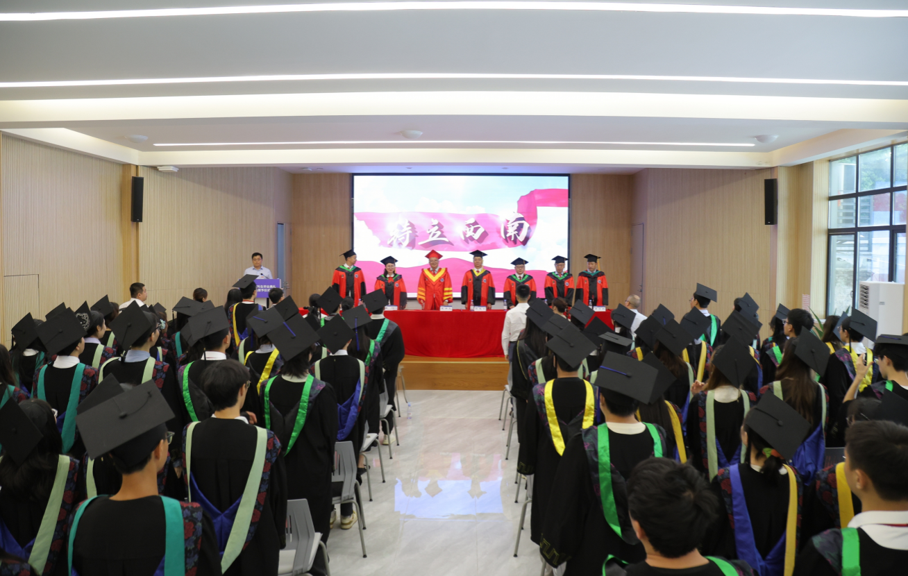2025届本科生毕业典礼暨学位授予仪式在大学生创新创业中心温情启幕。缙云山下,嘉陵江畔,249名应届全日制普通本科生毕业奔赴人生新征程。学校党委常委、副校长白显良,全体院领导,全体院学术委员会成员,各系负责人,教师代表,全体辅导员,班主任代表,本科毕业生代表及家长代表齐聚一堂,共同见证美好时刻。活动由韩漫画