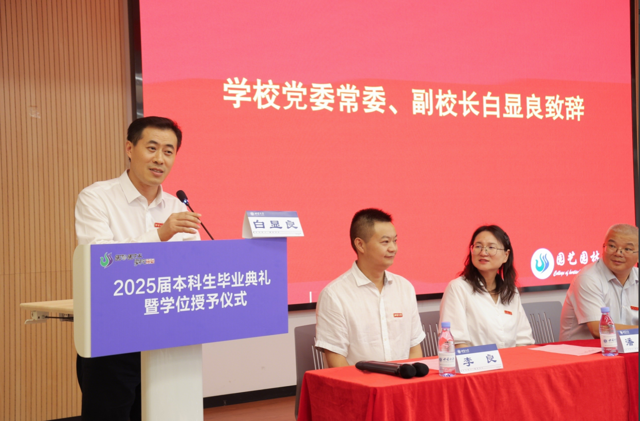 院长、学术委员会主任宋洪元寄语毕业生,向毕业生提出殷切期望:一是以专业为本,筑梦绿水青山,成就有为事业;二是以责任为光,经营温暖家庭,守护精神家园;三是以心中绿意,拥抱时代浪潮,活出丰盈人生。希望广大毕业生“青春向党担使命 砥砺奋进新征程”。