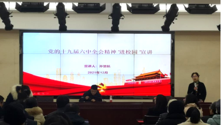 联合召开十九届六中全会精神宣讲会,学校党的十九届六中全会精神宣讲团成员、校党委委员、学生工作部、学生工作处、武装部部长孙楚航作宣讲。会议由韩漫画