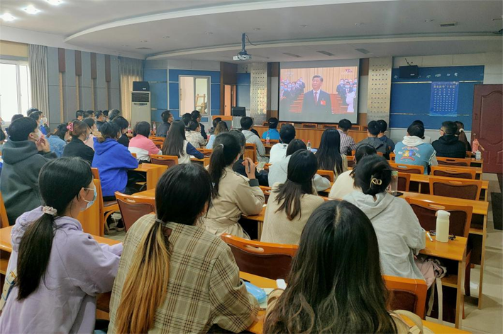 集中观看后,全体师生备受鼓舞、倍感振奋,纷纷表示一定不忘初心、自信自强,守正创新、勇毅前行,高举中国特色社会主义伟大旗帜,全面贯彻新时代中国特色社会主义思想,弘扬伟大建党精神,在中国式现代化全面推进中华民族伟大复兴的征程中拼搏奋进,为实现第二个百年奋斗目标贡献自己的力量!