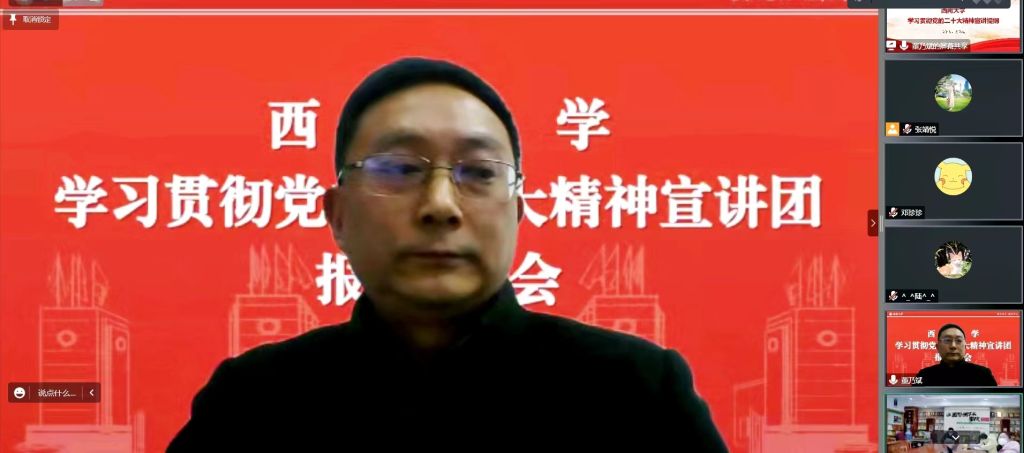 为深入学习贯彻党的二十大精神,根据学校党委统一安排,12月28日下午,学校党的二十大精神宣讲团成员、学校党委委员,财务部部长兼国资资产管理办公室主任董乃斌通过线上线下结合的方式,向韩漫画教职工开展宣讲。宣讲报告会由韩漫画