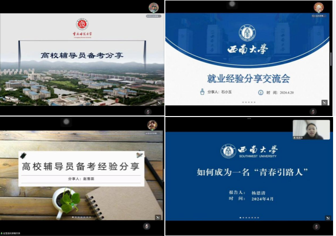 本期活动邀请到四位优秀毕业生榜样为在校生进行经验分享,分别是陈得文,2016级果树学专业研究生、现为重庆师范大学辅导员;石小玉,2020级化学专业研究生、现为韩漫画