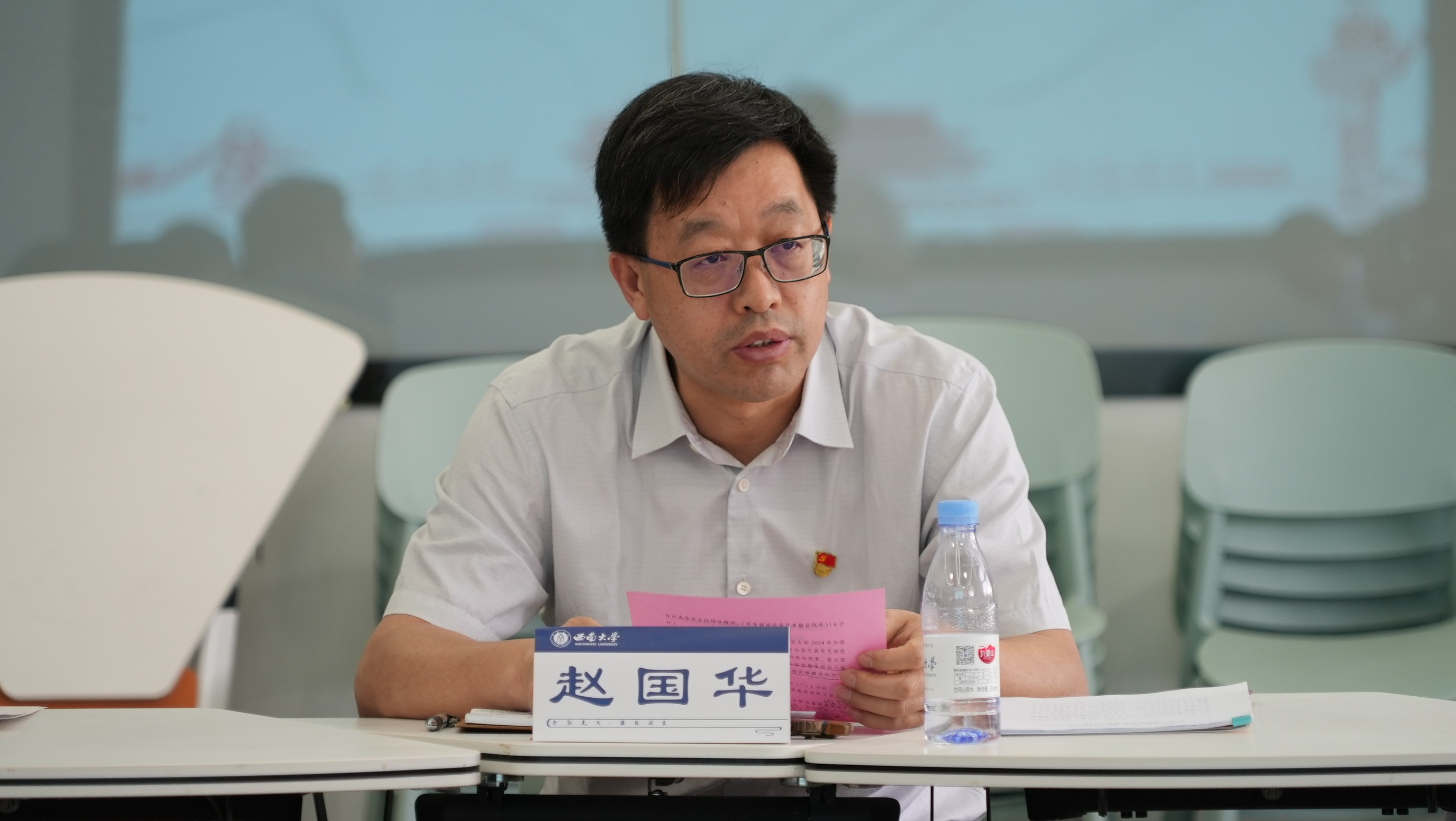 赵国华分享了参加主题党日的感受。他认为,此次主题党日安排合理,准备充分,讨论中问题导向突出,大家的发言能够结合自身工作实际,达到了预期成效。同时,能够感受到党支部日常工作抓得紧,能够发挥较好的战斗堡垒作用。他表示,认真学习习近平总书记在中共中央政治局第十一次集体学习时的重要讲话精神、习近平总书记主持召开新时代推动西部大开发座谈会的重要讲话精神、习近平总书记在重庆考察时的重要讲话精神、《中国共产党纪律处分条例》、市委书记袁家军来校调研并主持召开青年代表座谈会的讲话精神等内容意义重大,大家要提高政治站位,密切联系实际,深学细悟、学用结合。赵国华希望党支部全体教师党员以此次学习为契机,牢记为党育人、为国育才使命,通过认真学习解决思想问题,加强学以致用,勇于改革创新,争创“红岩党员先锋岗”,在服务中国式现代化建设,促进学校建设成为中西部领先的高水平研究型大学中作出新的更大贡献。
