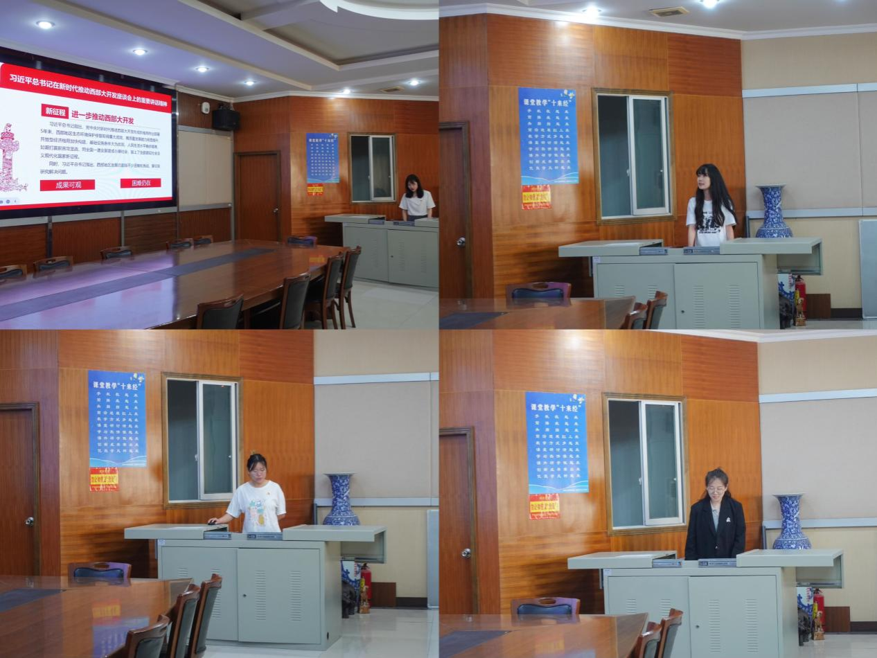 会上,龚澳同志领学了习近平总书记主持召开新时代推动西部大开发座谈会的重要讲话精神和习近平总书记在重庆考察时的重要讲话重要指示精神,宋玢瑶和徐璨同志共同领学了《中国共产党纪律处分条例》第六章至第八章,李玉楠同志领学了习近平总书记对新时代青年的寄语和重庆市委书记袁家军来校调研并主持召开青年代表座谈会的讲话精神。