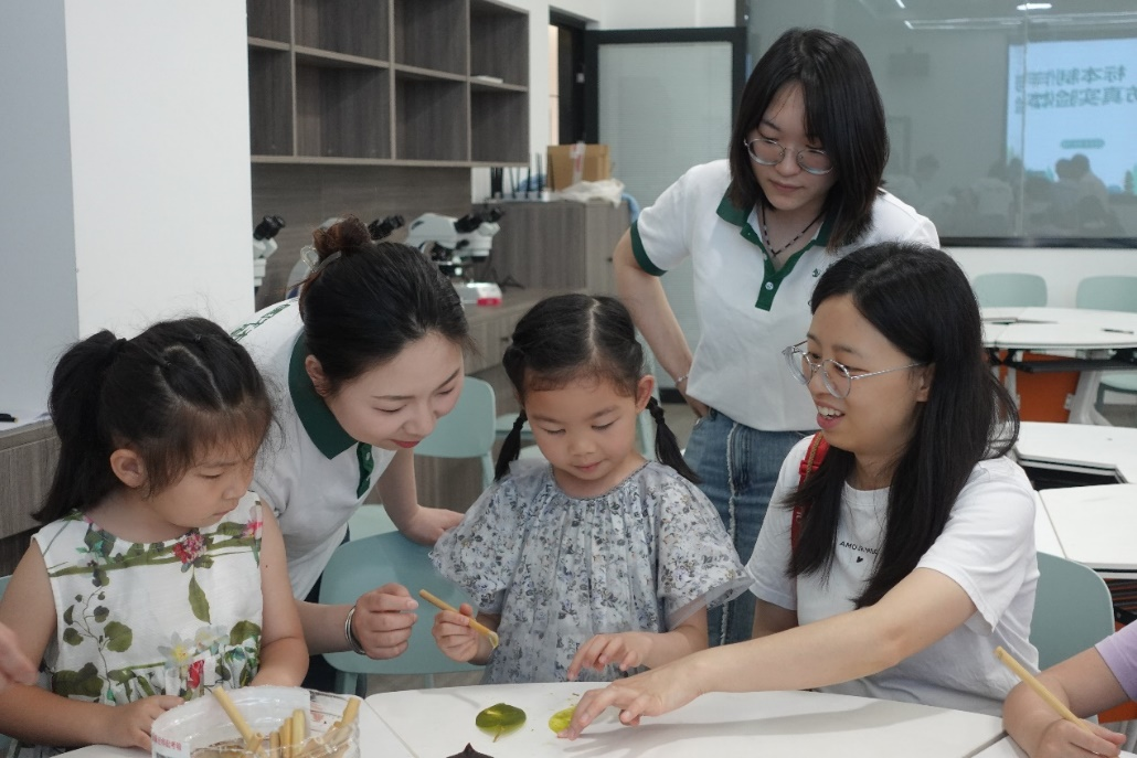 33教508实验室,刘家琳教授和吴雨浓老师向孩子们讲述如何进行风景园林鉴赏,带领孩子们用显微镜观察植物、制作植物标本,在虚拟仿真实验中生动体验常见植物形态解剖特征解析与重构。孩子们在感受到科学魅力与神奇的同时,更体会到了动手实践的乐趣与成就。