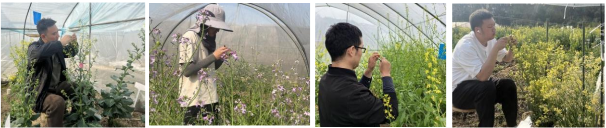 夕阳为试验田披上金色霞光,党员们沾满花粉的双手与胸前党员徽章相映生辉。这场历时40天的实验室-田间接力实践,累计完成5个甘蓝品种、2000余株的杂交授粉、以及千余株自交授粉工作,为培育优质高抗甘蓝新品种提供了重要资源。支部构建起“党建+科研+育人”三维融合机制,实现了党员素质与科研创新的双提升。