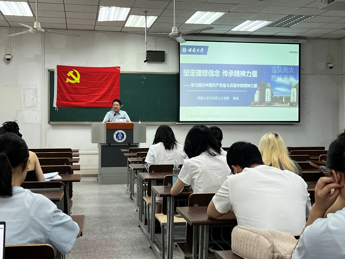 副院长唐斌教授为毕业生党员带来了一场生动的党性教育课。他以《坚定理想信念 传承精神力量——学习践行中国共产党奋斗历程中的精神力量》为题,深入浅出地讲解了中国共产党的奋斗历程和精神力量,帮助毕业生党员进一步坚定了理想信念,坚守正确的世界观、人生观和价值观,永葆共产党员的政治本色。