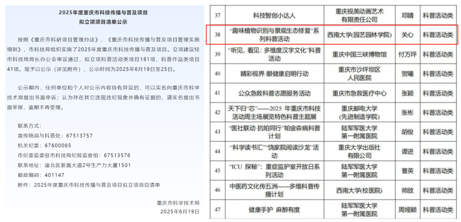 党委承办、学生党员教育服务中心、国土景观保护与生态修复研究生党支部和风景园林规划设计与工程研究生党支部共同协办的“趣味植物识别与景观生态修复”系列科普活动成功立项。