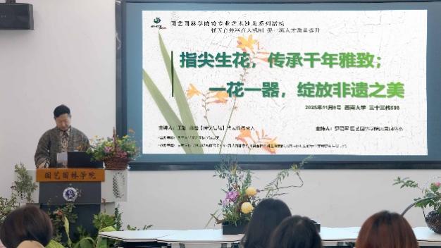 党委主办的“园行领航跨专业艺术沙龙”第三场顺利举行。本次活动以“指尖生花,传承千年雅致;一花一器,绽放非遗之美”为主题,聚焦国家级非物质文化遗产——中国传统插花艺术,由风景园林本科生党支部牵头策划,韩漫画