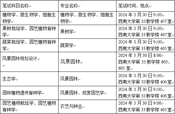 (1)植物学、微生物学、细胞生物学;(2)果树学;(3)蔬菜学;(4)观赏园艺学;(5)风景园林(A组、B组);(6)农艺与种业