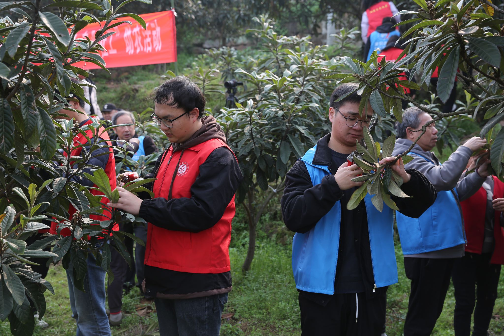 退休教师李晓林老师、枇杷种植资源创新与利用团队党江波老师及园艺专业10余名学生志愿者参加活动。
