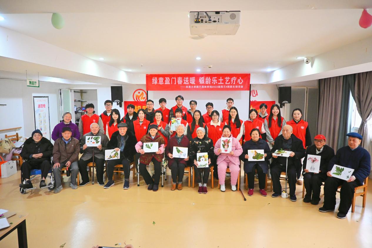 2022级园艺4班团支部携手重庆市北碚区朝阳街道养老服务中心、北碚区碚城义工协会,精心策划开展了“绿意盈门春送暖,银龄乐土艺疗心”主题团日活动,以专业特色为依托,为老人们送去春日里的温暖与快乐。