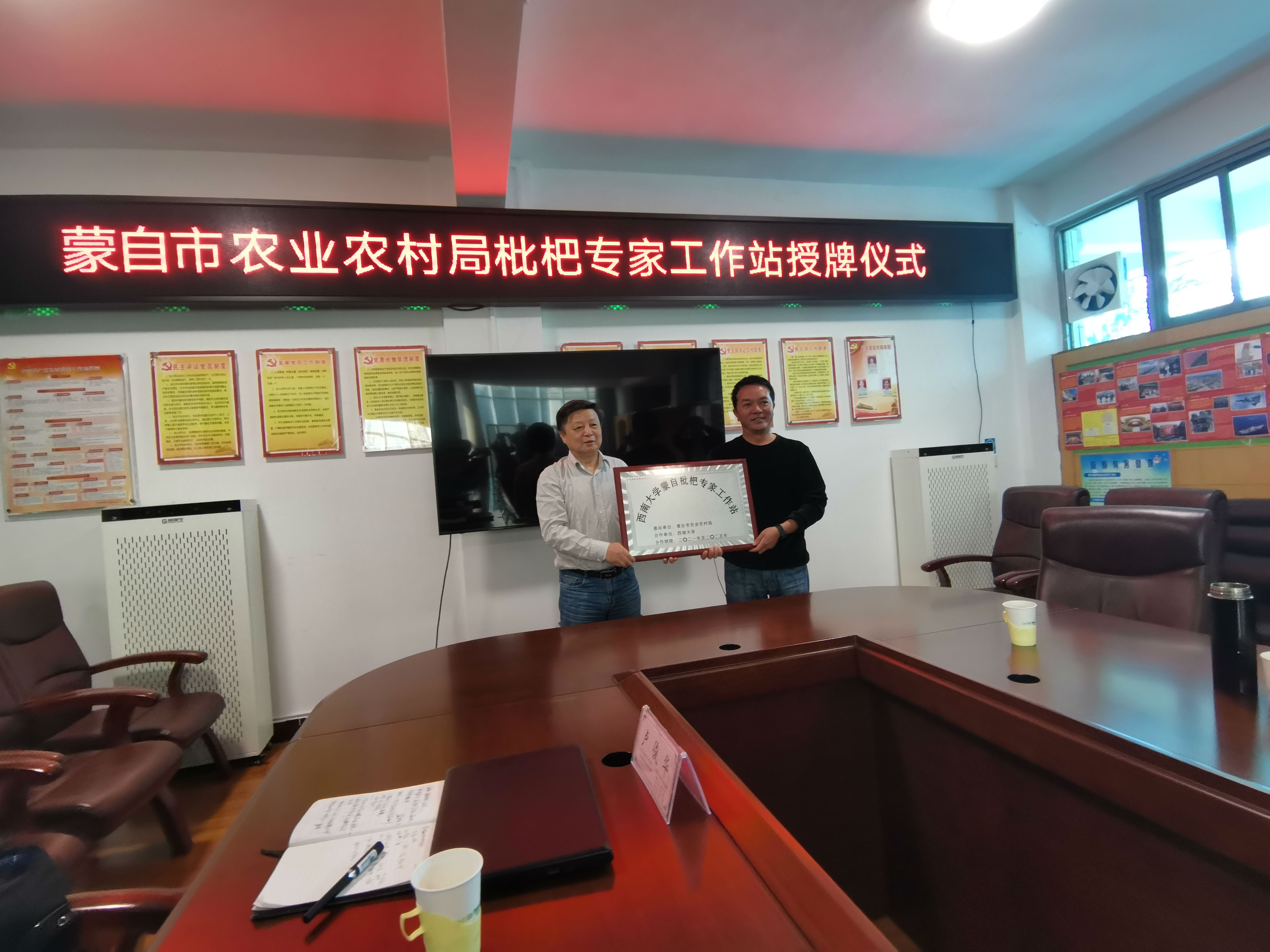 蒙自枇杷专家工作站授牌仪式(左一:梁国鲁研究员)