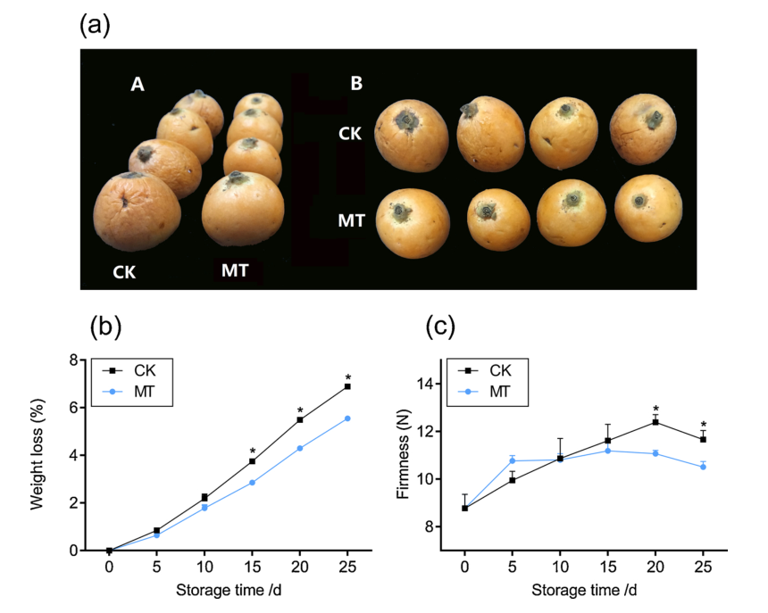 枇杷是我国南方的重要经济果树,其果实以独特的风味和丰富的营养物质深受消费者的喜爱,但是货架期较短。冷藏是延长枇杷果实采后时间的有效技术,但果实经过10-20天的低温贮藏后,会出现果皮起皱、木质素含量和硬度增加等冷害症状。褪黑素是一种安全而有价值的吲哚胺,也是一种广泛分布在植物中的多功能分子。然而,关于褪黑素作为采后因素对枇杷果实木质化和品质的影响的资料很少。