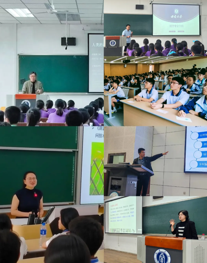 谭泽轩、魏大勇老师分别从专业发展前景与升学策略、绿色产业人才能力矩阵等方面为同学们带来一场别开生面的生涯规划课。"创新者说"专题则邀请中国国际大学生创新大赛金奖团队的雍顺圆、孟婷婷同学分享枇杷育种科研历程,以生动案例诠释农业科技创新的现实价值。同时中学生们对园艺专业的科技探索、风景园林专业的未来发展等表现出浓厚的兴趣,与专家教授们进行了面对面的交流探讨。