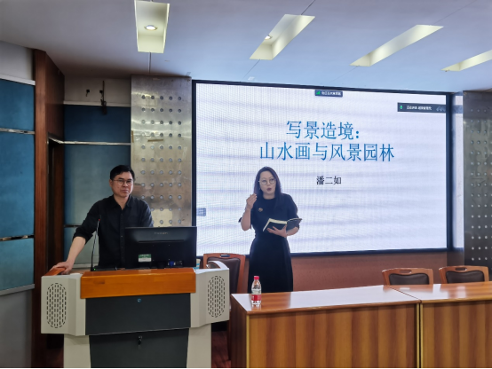 5月15日下午,风景园林学术讲座“写景造境:山水画与风景园林”于33教406隆重举行。本次讲座邀请到画家、书法家,香港中文大学(深圳)驻校艺术家潘二如老师作为主讲人,左赛男老师作为对谈嘉宾。讲座由周建华副院长主持,风景园林系副主任刘家琳及相关师生100余人参加讲座。